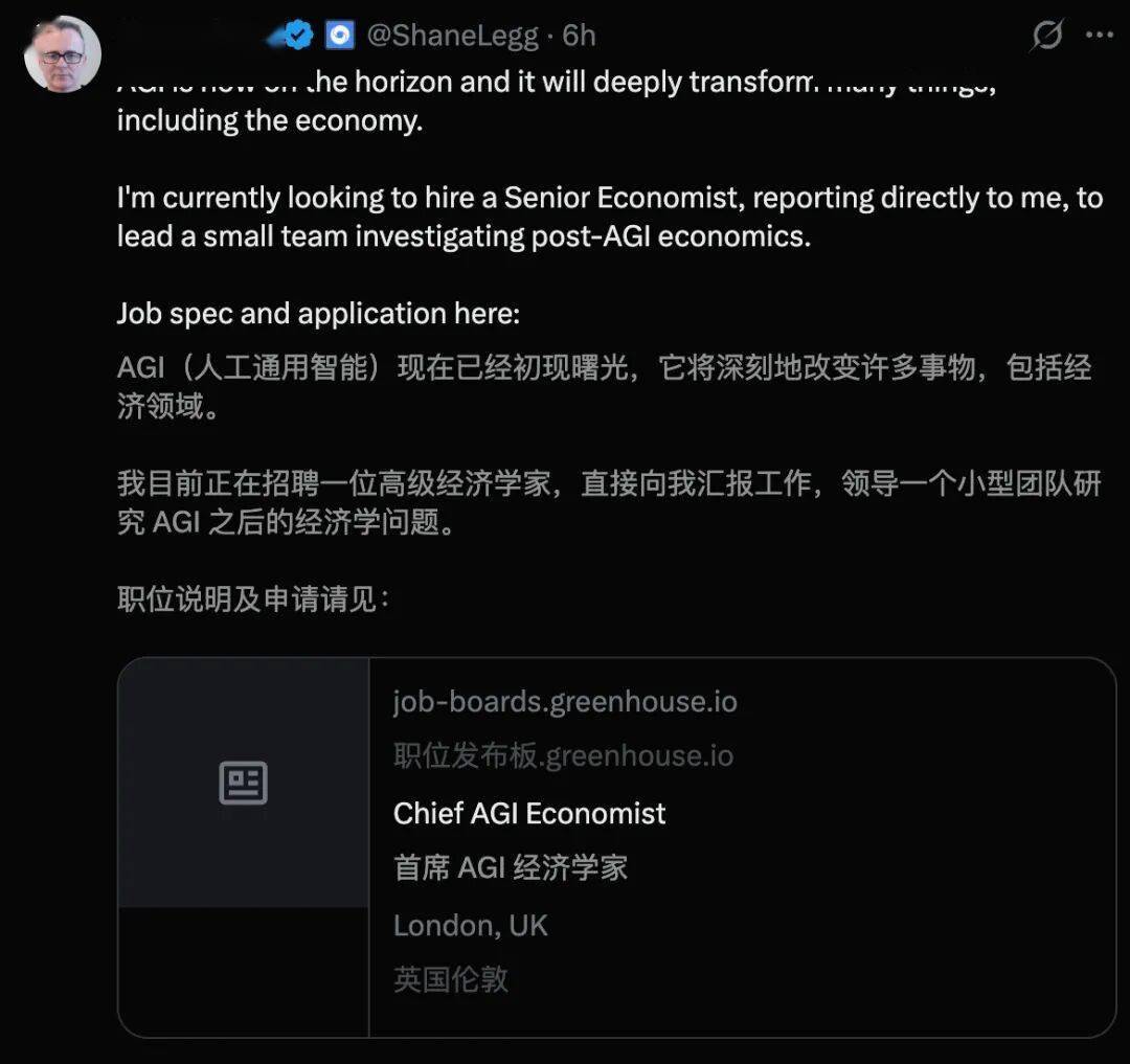 「AGI已近正在天涯。我正正在告急寻找一位高级经济学家,会去做什么?谁来决定资本的分派?谁来为全平易近根基收入买单?